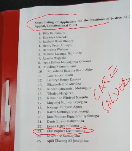 Justice Mulyagonja is among the 24 applicants that have been shortlisted for vacant positions on the panel of the Constitutional Court.