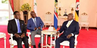 Museveni receives his counterpart Mbasogo of Equatorial Guinea