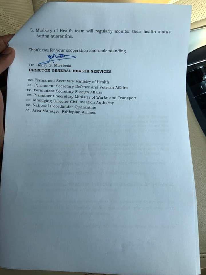 “The passengers must adhere to Port Health Regulations. They will undergo Mandatory Institutional Quarantine for 14 days at Legacy Apartmemts.During quarantine, test samples will be taken from them before discharge,”Dr Mwebesa wrote.