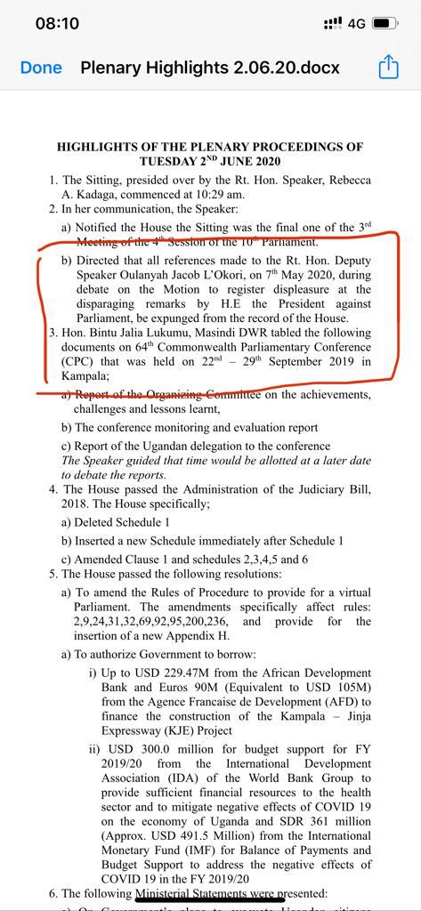 While she had allowed her blue eyed MPs to lambast Oulanyah, the Omoro man did not take it lying down as he insisted that such a record be expunged from the Parliamentary record.