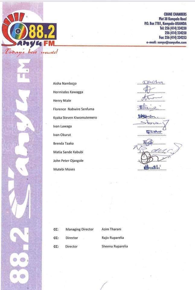 Mr Ruparelia sacked the entire Sanyu FM staff on Wednesday after they rejected a 25% pay cut and instead went on a sit-down strike.