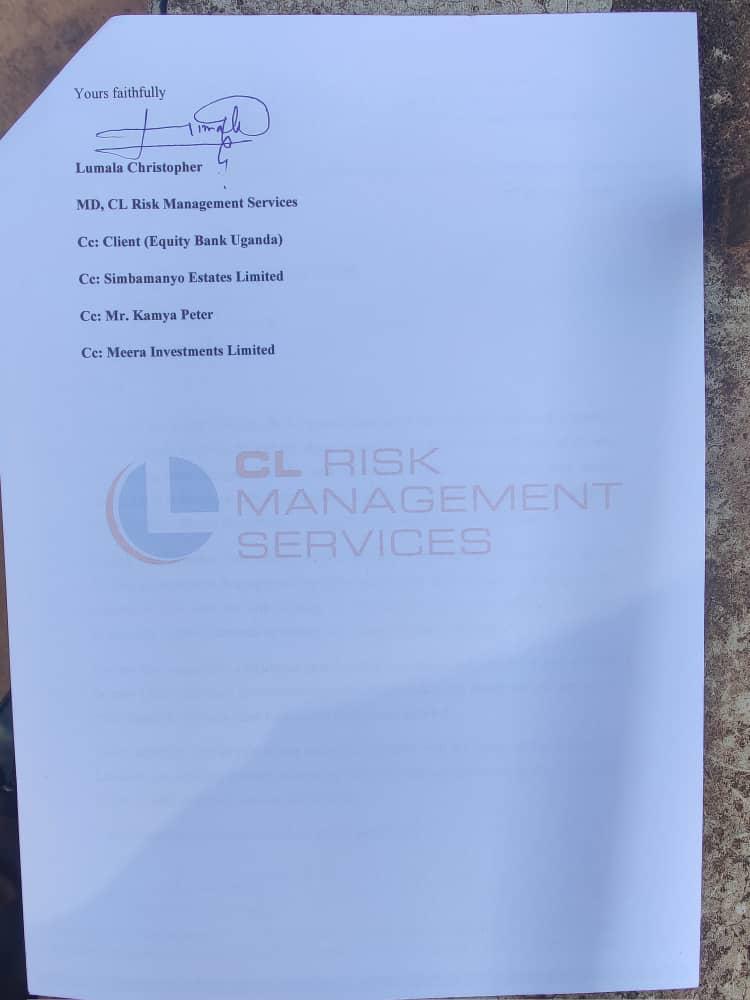 Simbamanyo Estates is also accusing Equity Bank Uganda of providing Equity Bank Kenya with an illegal cover to conduct business in Uganda where it has no jurisdiction.