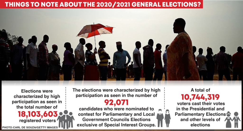 These were the fourth (4th) General Elections to be held under a multi-party political system; The elections are remarkable as they were held amidst peculiar challenges posed by the #Covid-19 pandemic; Ugandans were determined to adapt to the challenges as a result of public health regulations and compiled and managed to fulfil the constitutional requirement to hold elections for the specified electoral positions every five years;