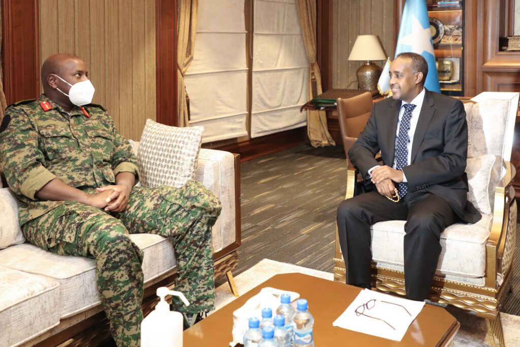 The Commander Land Forces is visiting Uganda troops in Somalia where he also met Somali politicians including the Prime Minister Mohamed Roble.