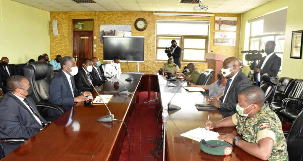 The meeting at the Ministry of Defence and Veteran Affairs headquarters in Mbuya – Kampala, was a courtesy call aimed at strengthening the existing cordial relations between the two countries and cooperation in defence.