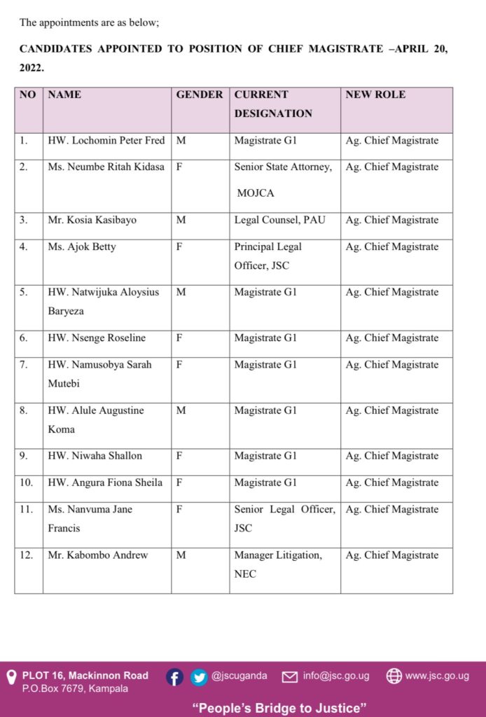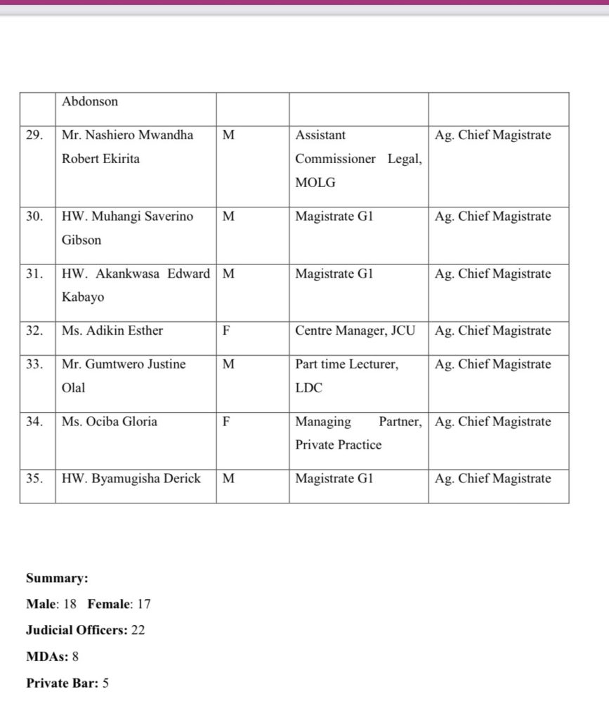 The recruitment is in fulfillment of the expanded Judiciary structure whose goal is to have Chief Magistrates deployed at every District in the Country, to improve access to Justice to the people.