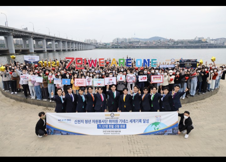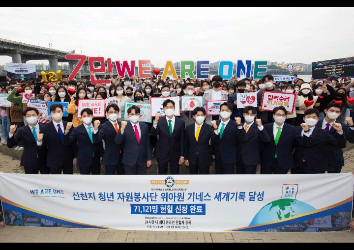 Korean volunteers were listed in the GUINNESS WORLD RECORDS™️ for the challenge of Most people to sign up as blood donors online in 24 hours. On 1st of October the youth volunteer group ‘WE ARE ONE’ completed online blood donation applications for 71,121 volunteers for 24 hours to challenge the World Record.