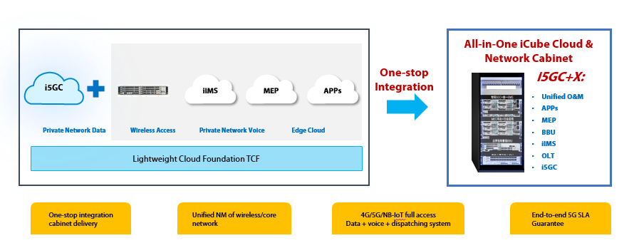 ZTE iCube cloud & network cabinet products are integrated with cloud, network, industry, and dimension in a one-stop mode. Based on the lightweight cloud foundation TCF, the cloud cabinets can be configured with i5GC, iIMS, BBUs, MEPs, OLTs, and preset typical applications as well as third-party APPs on demand. The cloud & network cabinets can be flexibly placed in enterprise campuses or mobile access equipment rooms to meet the “last mile” network connection and computing power requirements of industry customers such as mines, intelligent manufacturing, ports, and transportation (see Figure 2).