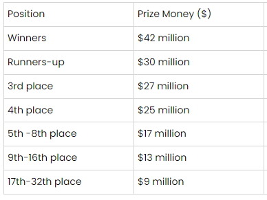 Those finishing between the 5th to 8th spots will be awarded a sum of USD 17 million each while those finishing between the 9th to 16th spots will take home USD 13 million each. The rest of the teams will be awarded USD 9 million each for participating in the tournament.
