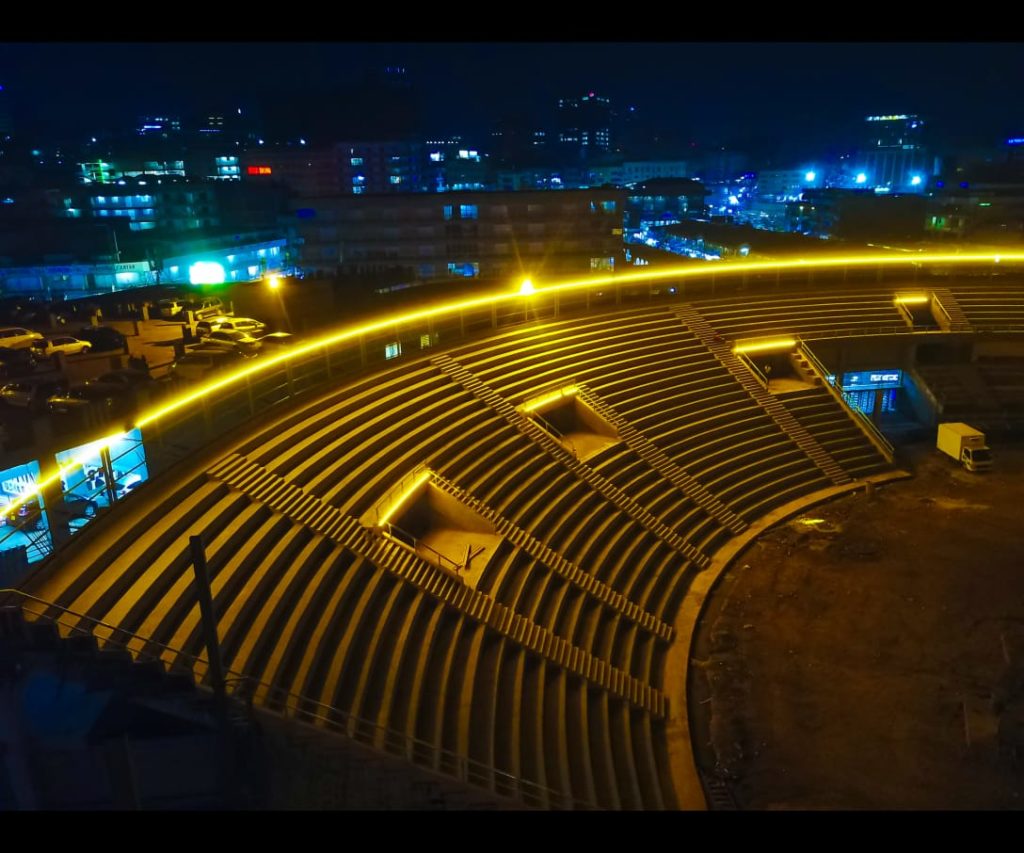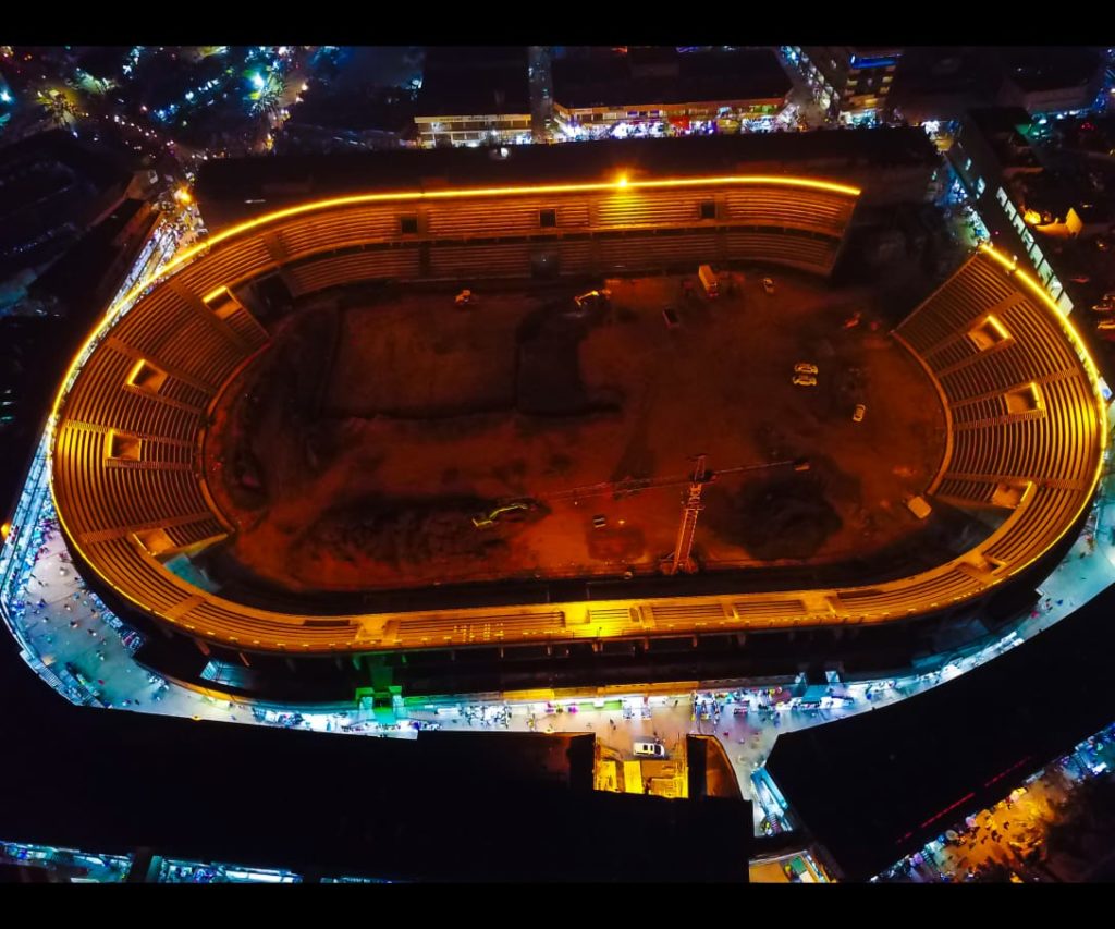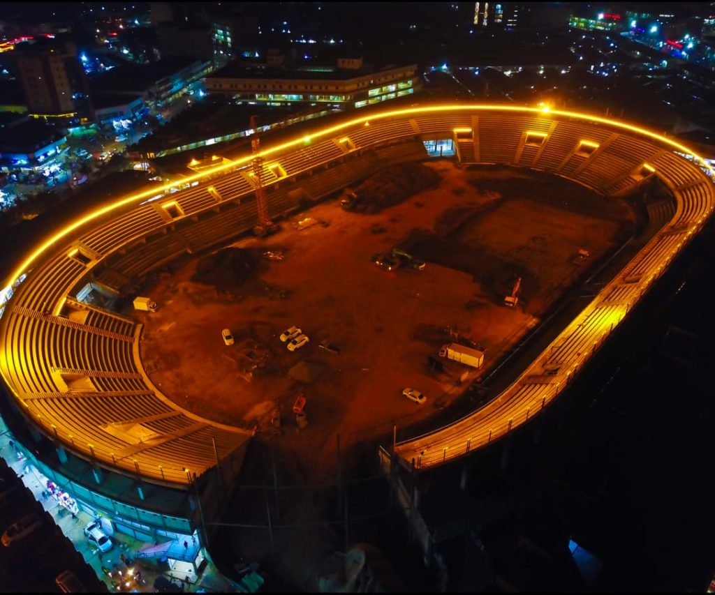 The Construction works are spear-headed by Roko Construction Company. The state of the art Stadium will have a modern athletic track and other indoor games plus multi-level parking of about 10,000 cars among others.
