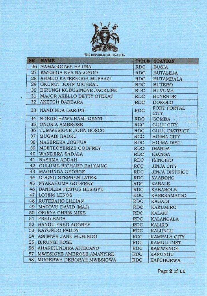 “In Exercise of the Powers conferred upon the President of the Republic of Uganda by Articles 99 and 203 of the 1995 Constitution (as amended); I hereby, appoint the following persons as Resident District /City Commissioners, Deputies and Commissioners at the RDC Secretariat,” Museveni stated.