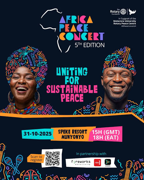 The Rotary Foundation will host the 5th Edition of the Africa Peace Concert at Speke Resort Munyonyo on Friday, October 31, 2025, in a grand celebration of music, culture, and unity under the theme of peace.