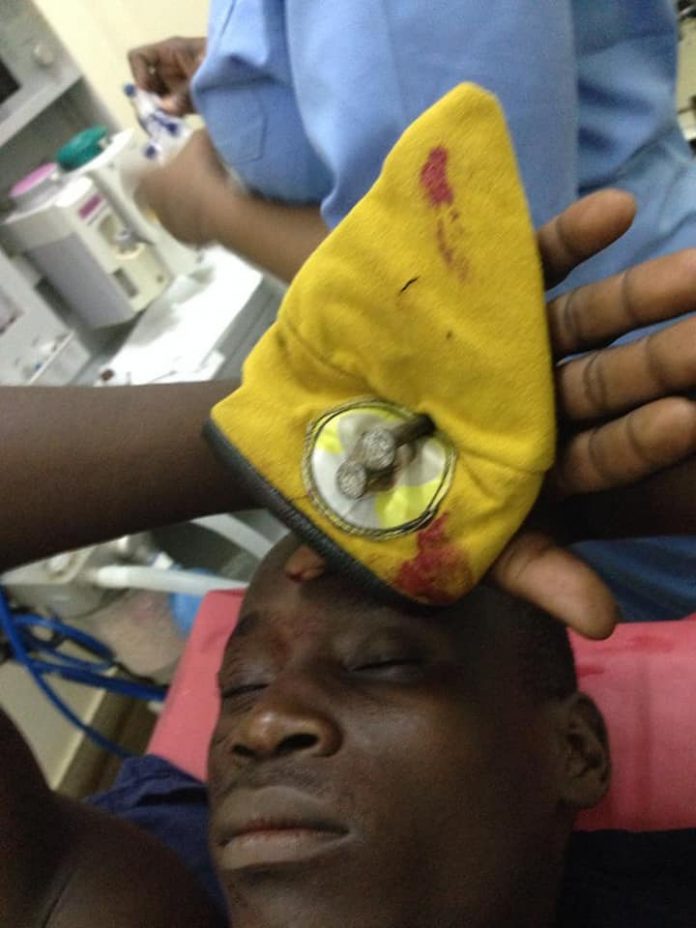 Police in Wandegeya is investigating an incident where a man identified as Baker Kasumba was nailed with a six inch nails for wearing a berate bearing the patriot of President Yoweri Museveni.