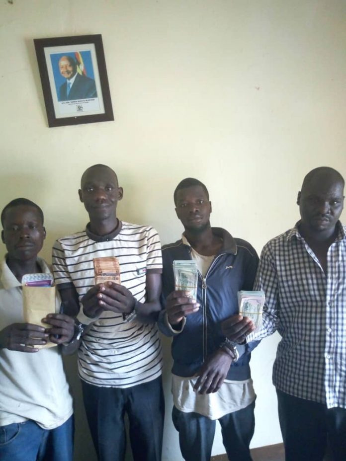 Police at Lira Central Police Station in Lira District are holding four suspects who were arrested while in possession of counterfeit currency notes of United States Dollars and South Sudanese Pounds. The suspects have been identified as Ambrose Okot, Sam Odongo, Martin Otia and Andrew Aleny, residents of Lira.