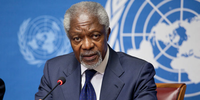 Mr Annan served two terms as UN chief from 1997 to 2006, and was awarded a Nobel Peace Prize for humanitarian work for his efforts.