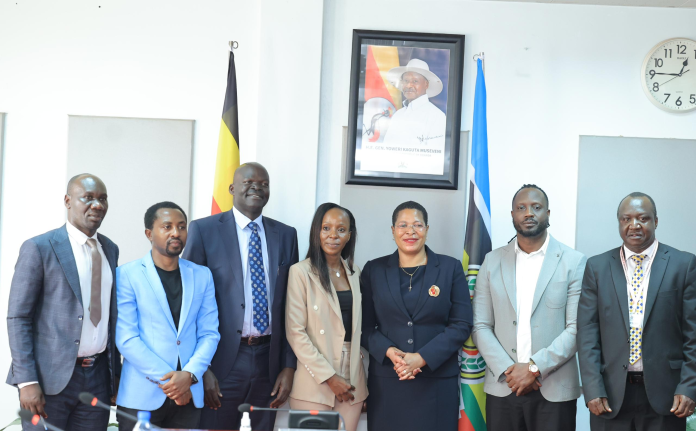 members of the Board of Trustees of Uganda National Cultural Centre led by their Chairperson, Prof. Okaka Opio Dokotum after meeting the Speaker of Parliament Anitah Among.
