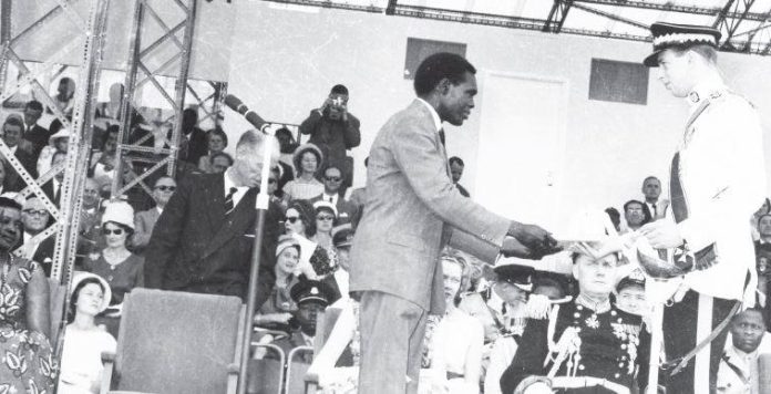 Milton Obote receiving instruments of power from the British on October 9, 1962.