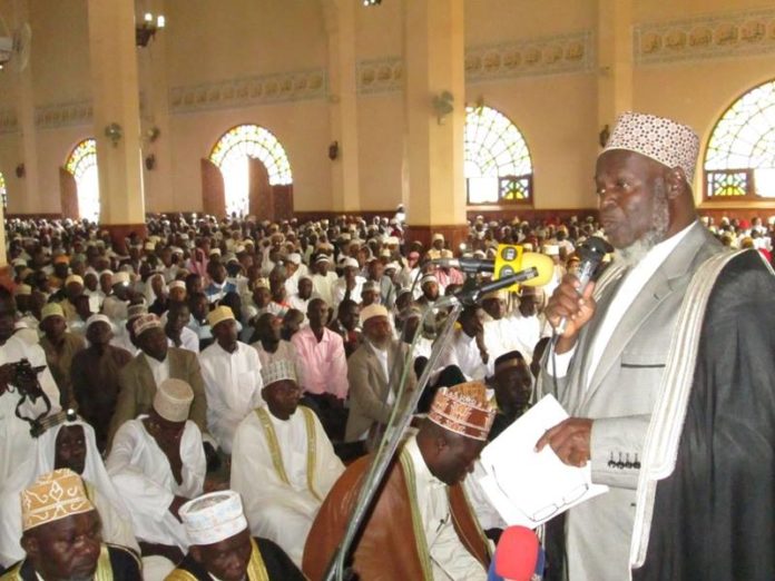 WARNED: Mufti Sheikh Ramathan Mubajje addresses Muslim faithful during Eid prayers at Old Kampala mosque