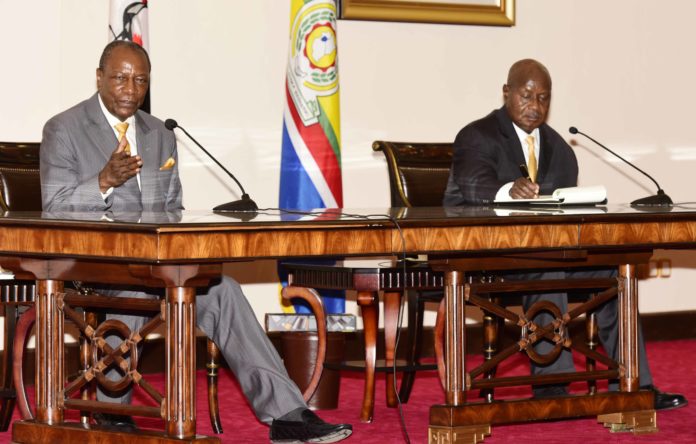 Presidents Yoweri Museveni Alpha Conde of Guinea, who is also Chairman of the African Union.