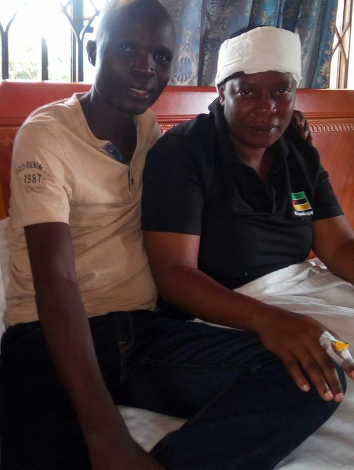 IN HOSPITAL: Betty Nambooze, with singer Ronald Mayinja in hospital. She was left with injuries on the head and chest .