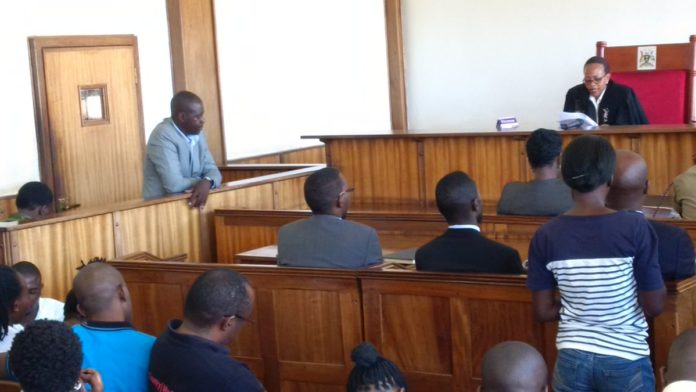IN COURT: Friends and coleagues of Andrew Lwanga (M) in blue shirt with clutches, follow the proceedings