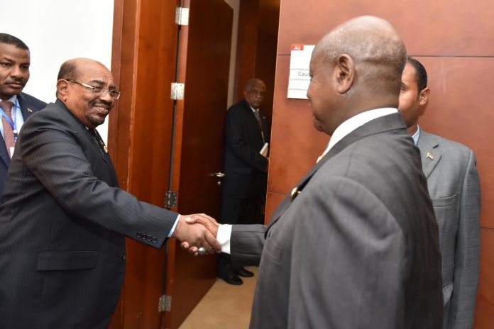 President Yoweri Museveni meets Omar El Bashir of Sudan