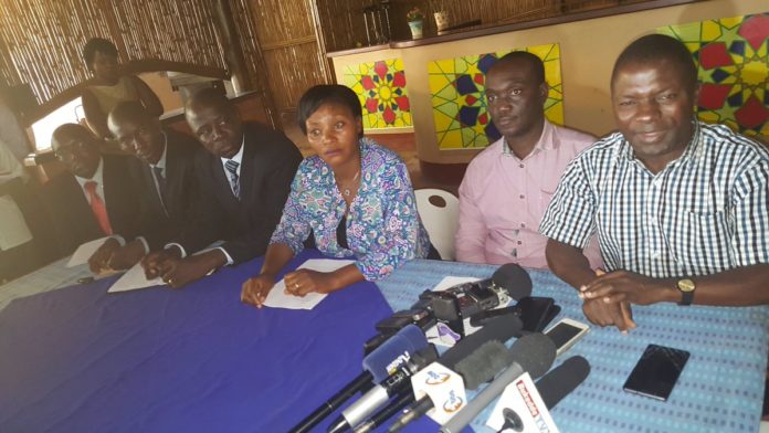 Kasese MPs led by Winnie Kiiza address a press conference.