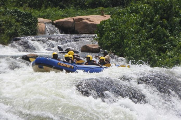 It wasn’t long before majority of us; over 30 were dressed in these. Some who were afraid of hitting the waters remained behind. Here, we were led down the river where rafting boats were waiting.