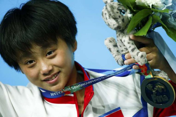 Kim Kuk-hyang, a16 year old diver won a gold medal in the women’s individual 10m platform finals followed by Ren Qian, 14, from China. The teenager then paid tribute to North Korean leader Kim Jong-un after her victory.