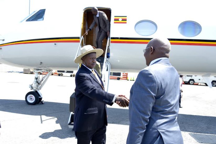 The President was received on arrival at JFK International Airport, New York, by the UN General Assembly President Mr. Sam Kutesa, Minister of State for Foreign Affairs Mr. Okello Oryem, Uganda’s Head of Mission and Permanent Representative to the United Nations Dr. Richard Nduhura, his deputy Mr. Kintu Nyago Military Attache Brig. Silver Kayemba and senior UN Protocol officers. Also to receive him at the airport was Uganda’s Ambassodor to the United States Olive Wonekha.