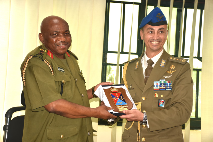 “The security of the country is very peaceful, and there is no cause for alarm,” he said, speaking on behalf of Gen Muhoozi Kainerugaba, Chief of Defence Forces, during a meeting with Italian Ambassador to Uganda, His Excellency Mauro Massoni. The bilateral meeting at the Ministry of Defence and Veteran Affairs (MODVA) headquarters in Mbuya, Kampala, focused on strengthening cooperation between the two countries in training, equipment, and business. Gen Bakasumba praised the Italian government for its significant support in stabilising Uganda through various socio-economic transformation programmes. Regarding the African Transition Mission in Somalia (ATMIS), Maj Gen Bakasumba commended International Partners and Development Partners for their efforts to pacify Somalia despite Al-Shabaab threats. He acknowledged the UPDF’s efforts towards restoring peace and security in Somalia, saying, “Surely, UPDF has sacrificed a lot for the mission as if it is our own country, and yet Uganda does not share a border with Somalia,” adding that “Uganda’s commitment in Somalia is great.” Maj Gen Bakasumba emphasised that Uganda remains eager to see a stable Somalia and said, “All these years, we have been working hard to degrade Al-Shabaab so that we can go in as tourists; that is our wish.” He noted that security challenges persist in Somalia due to imminent clan clashes and urged Somalia to build a robust force to address its security challenges. Regarding the Allied Democratic Force (ADF) terrorists, Maj Gen Bakasumba stated that the group has been significantly degraded and can no longer stand to fight. “We have partnered with the DR Congo army to derail all ADF capabilities. We are doing well in the mountainous area and regret the unfortunate incident of the death of tourists in Kasese,” said Maj Gen Bakasumba. He assured the Ambassador on the safety of tourists, especially in Queen Elizabeth National Park, saying that culprits behind the death of the tourists in Kasese have been brought to book. “Don’t worry, the park is now very safe. What happened in Kasese was a wake-up call to ADF. We encourage tourists to come in big numbers,” said Maj Gen Bakasumba. However, he requested the Italian government to support the UPDF in terms of training personnel and acquisition of modern equipment. Ambassador Mauro Massoni expressed his gratitude for the opportunity to strengthen collaboration between the two countries. He pledged to consolidate the existing partnership, saying, “Our collaboration with the army is very important. We have to make our relationship with Uganda very important.” The Italian Ambassador further promised to contribute to Uganda’s development. “We are ready to help whenever you want us,” he said.