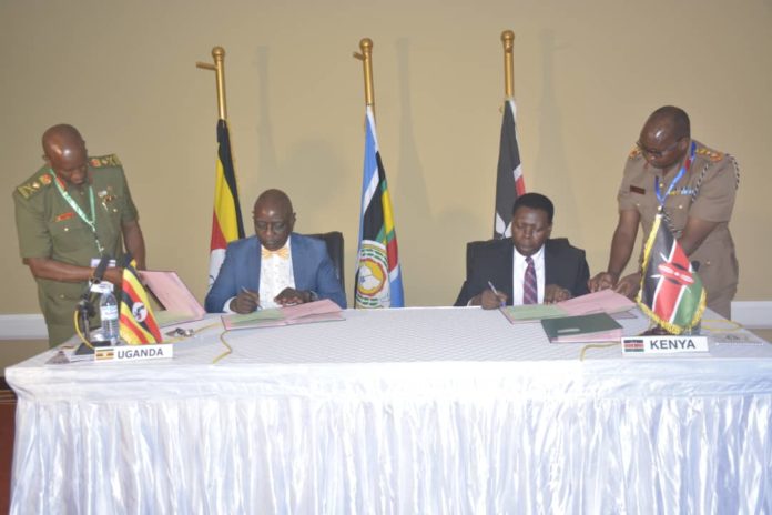 Uganda and Kenya have signed an agreement on cooperation in defence and security at Speke Resort Munyonyo in Kampala.