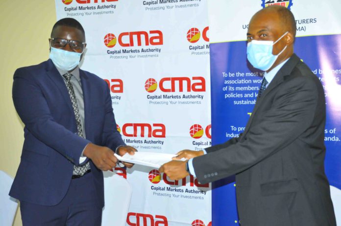 The Capital Markets Authority (CMA) and the Uganda Manufacturers Association (UMA) have signed a Memorandum of Understanding (MOU) that will enable Uganda’s manufacturing sector to take advantage of customized training on the various options for raising long-term capital to bolster their uptake of non-bank, market-based financing that best fits their needs.
