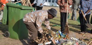 Tanzania President John Magufuli helps clean streets
