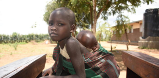 Hunger Crisis: Children in Karamoja take younger siblings to school for...
